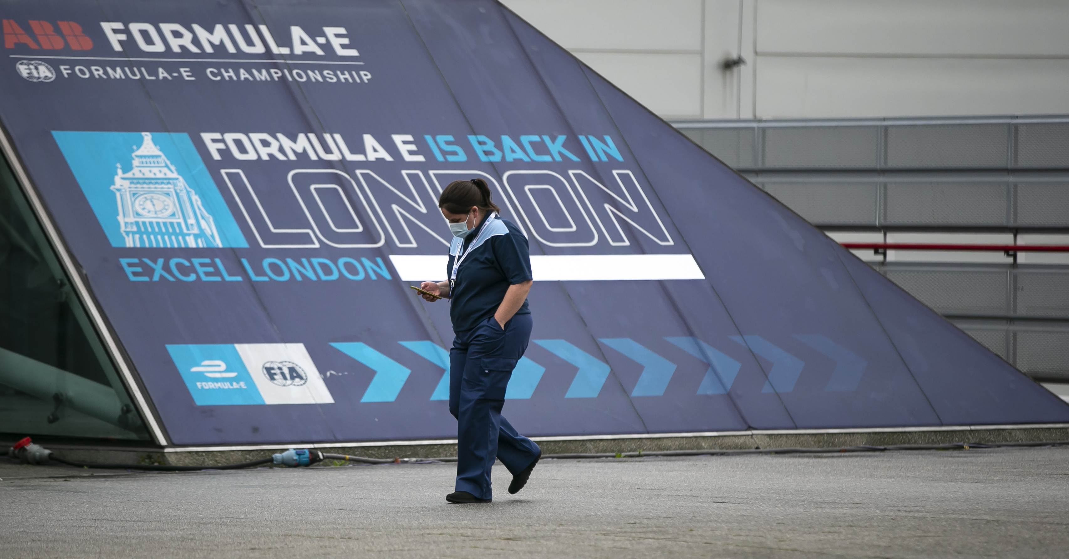 1月12日,一名工作人员走向位于英国伦敦ExCel会展中心的疫苗接种中心。(新华社记者韩岩摄)