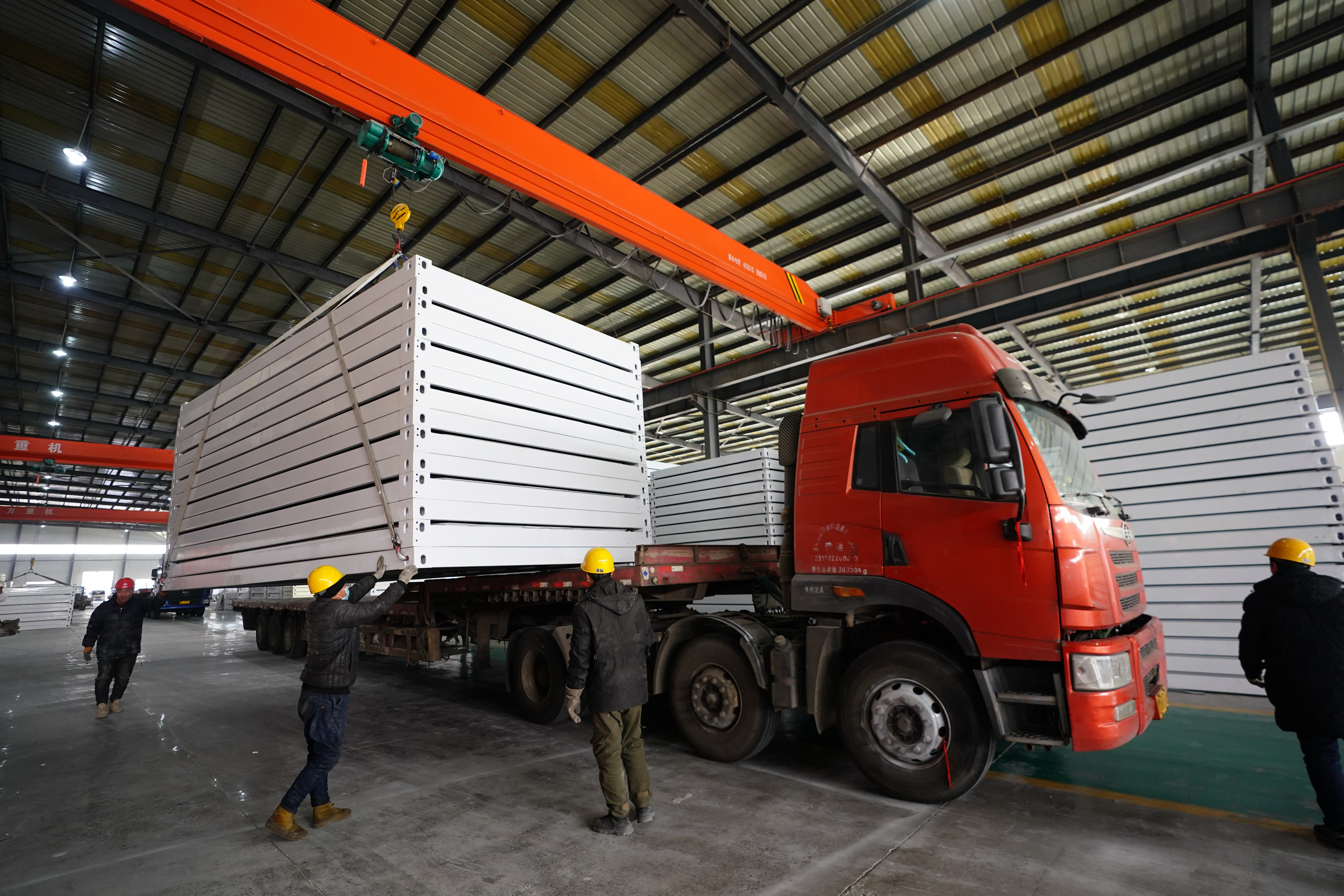 此次发往石家庄的有已组装好的房屋成品和需要现场组装的房屋部件等。“房屋成品在工厂内的预装率高达90%以上,配套水电管线俱全,运达当地可立即投入使用;房屋部件则可由熟练工人在一天内完成组装,比以传统方式盖房子快得多。”张国勇说。