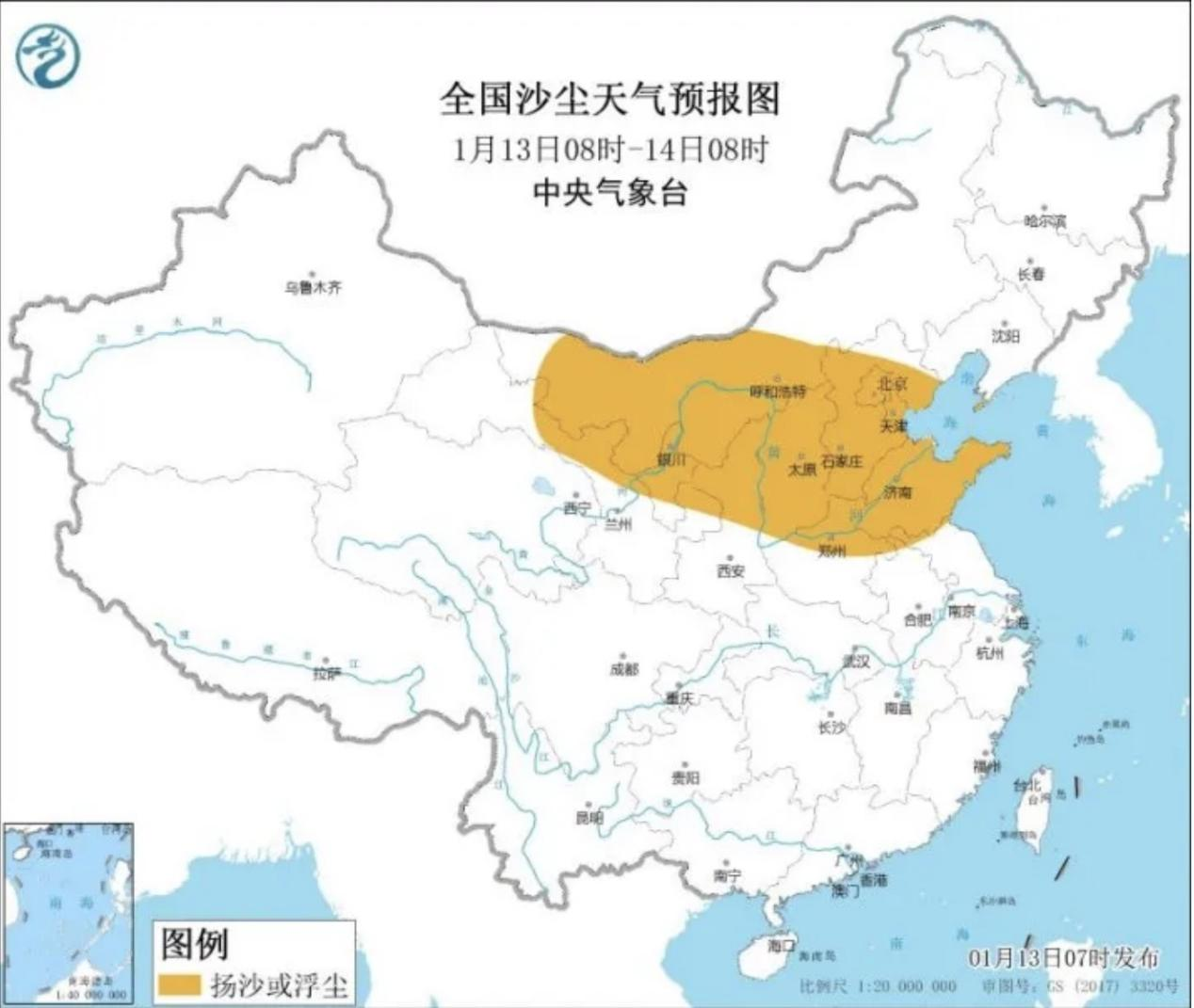 此外,13日至15日,内蒙古中西部、甘肃中北部、宁夏、陕西北部等地仍多扬沙或浮尘天气;受沙尘传输影响,华北、黄淮等地部分地区也有沙尘天气。
