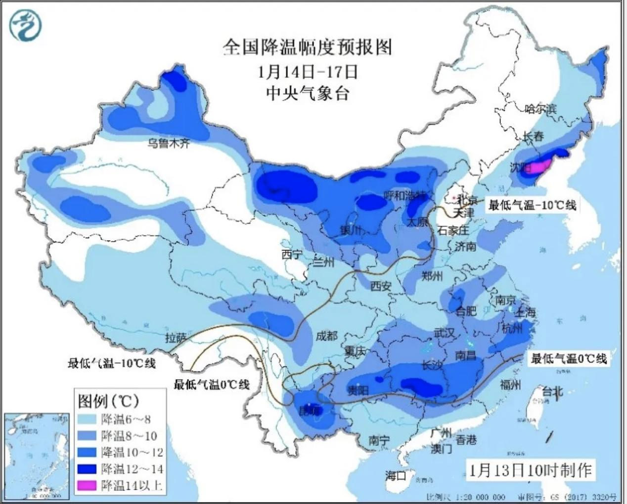14日起,新一轮寒潮天气又将来袭其中14日至16日主要影响北方地区16日至17日主要影响南方地区。