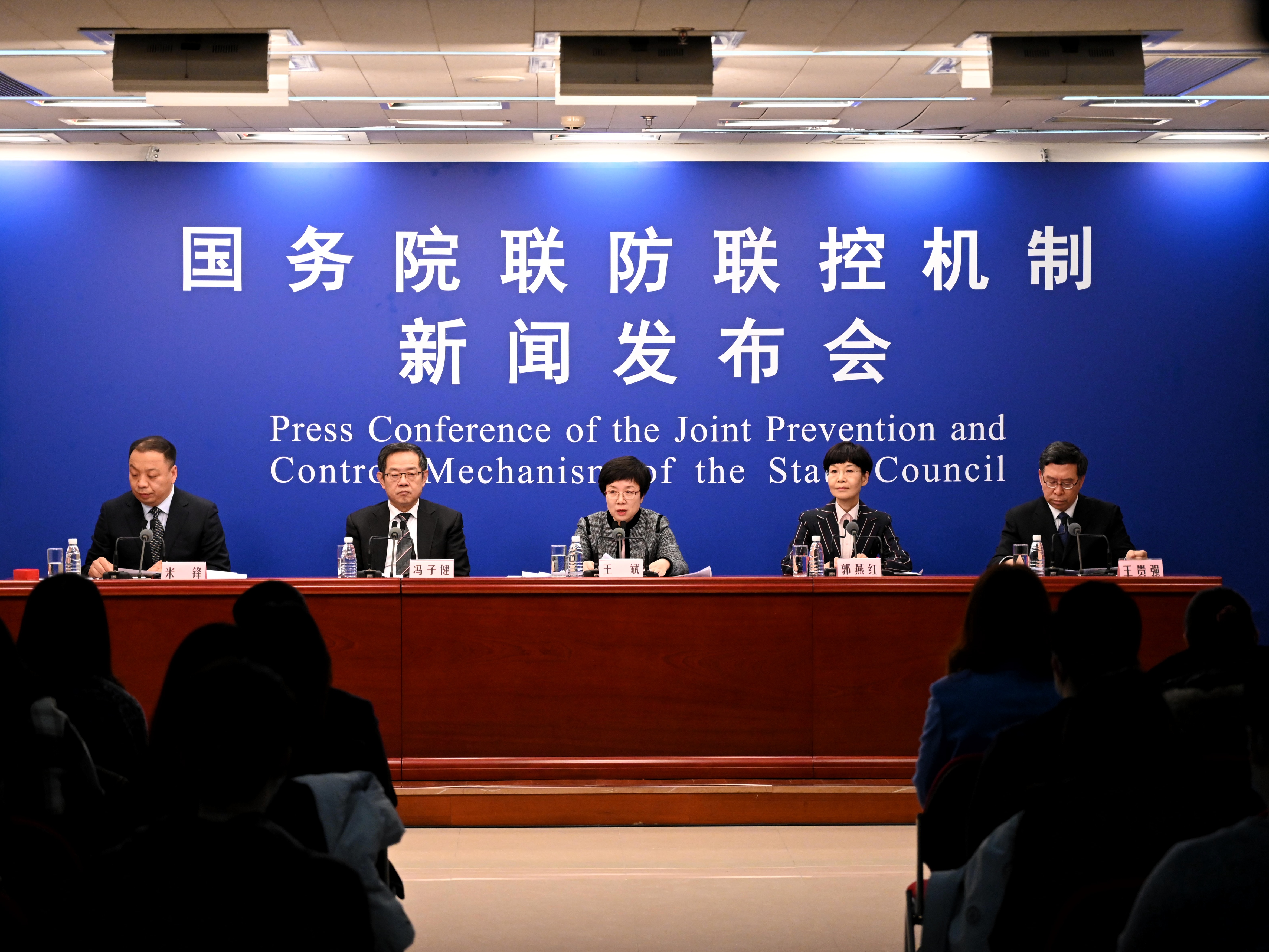 ↑13日国务院联防联控机制新闻发布会现场。国家卫健委供图