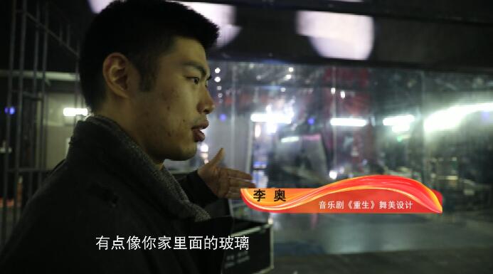 音乐剧《重生》舞美设计 李奥:有点像你家里面的玻璃,就是会贴一个镜面的膜,原理其实差不多,这边可以看到后面亮的地方,所以我们其实是有一个这样的切换,一开始时候罗映珍和金勇他们在后面,就看到罗映珍照顾罗金勇在床上,后来映珍睡着了,仿佛是在意识世界里面他们两个人好像相遇了。罗金勇上来对着她唱了一首歌,好像是他没有说完的话一样。