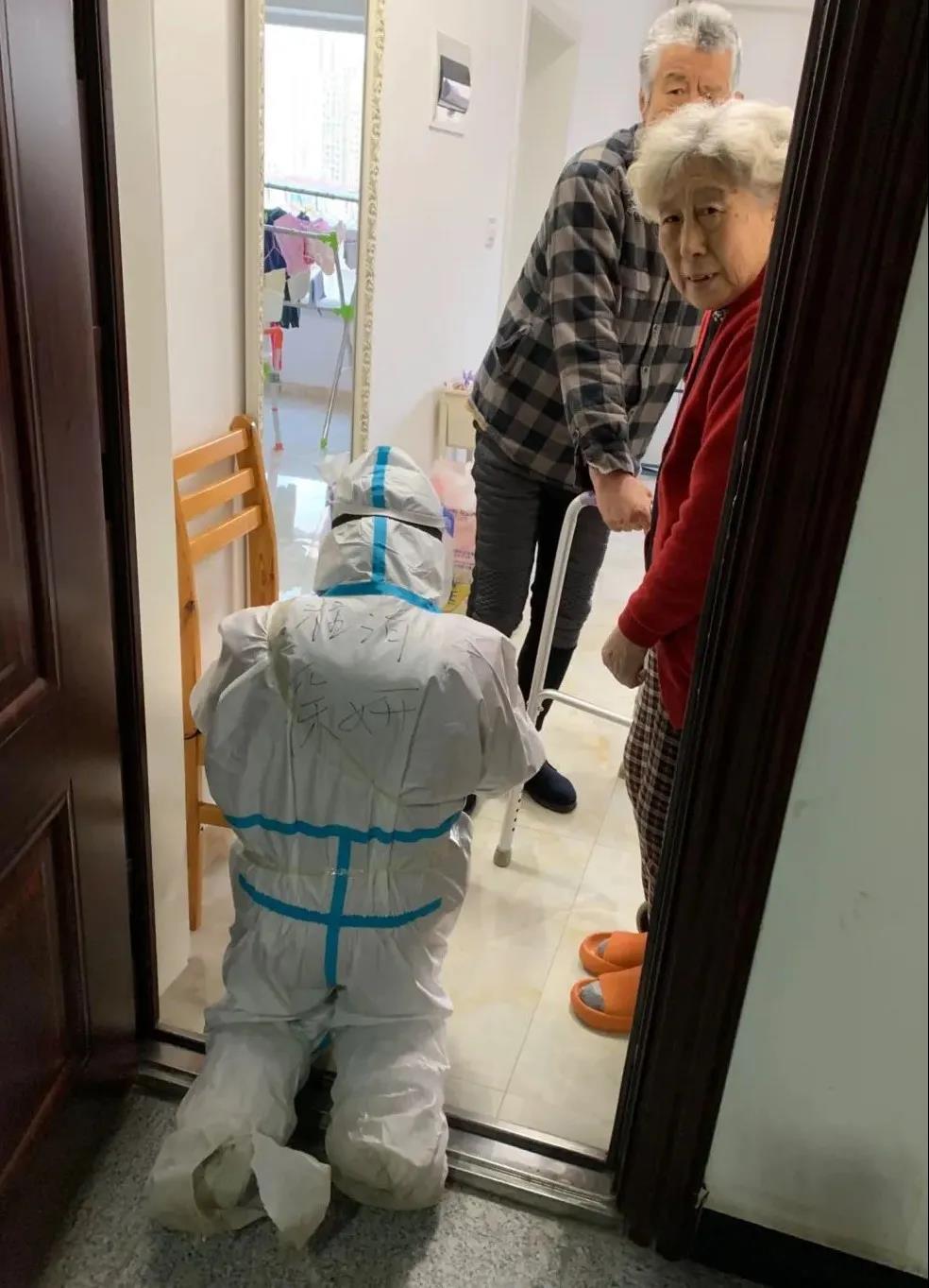 “一套防护服成本很高,穿脱一次就废了,所以我们基本都不吃饭。”走到照片中这户的时候,徐妍感觉自己“晕乎乎”的。“当时没多想,就想快点完成我的工作,不知不觉就跪下了。因为我是第一道流程,负责刷身份证登记信息,只有我做完了,后面的流程才能顺利进行。”徐妍说。
