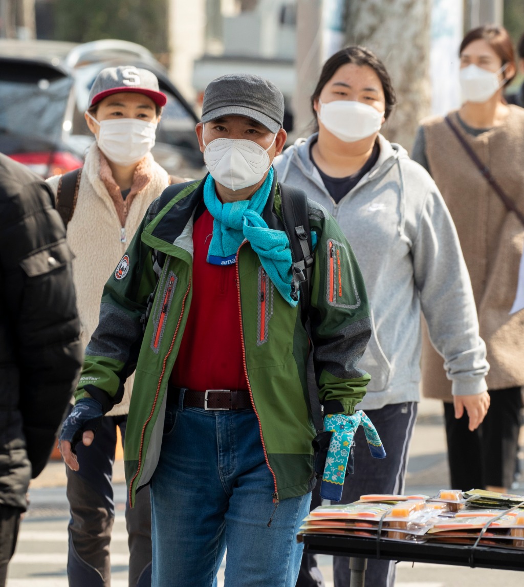 图为2020年3月17日,在韩国大邱,人们戴口罩在西门市场附近出行。(新华社发,李相浩摄)