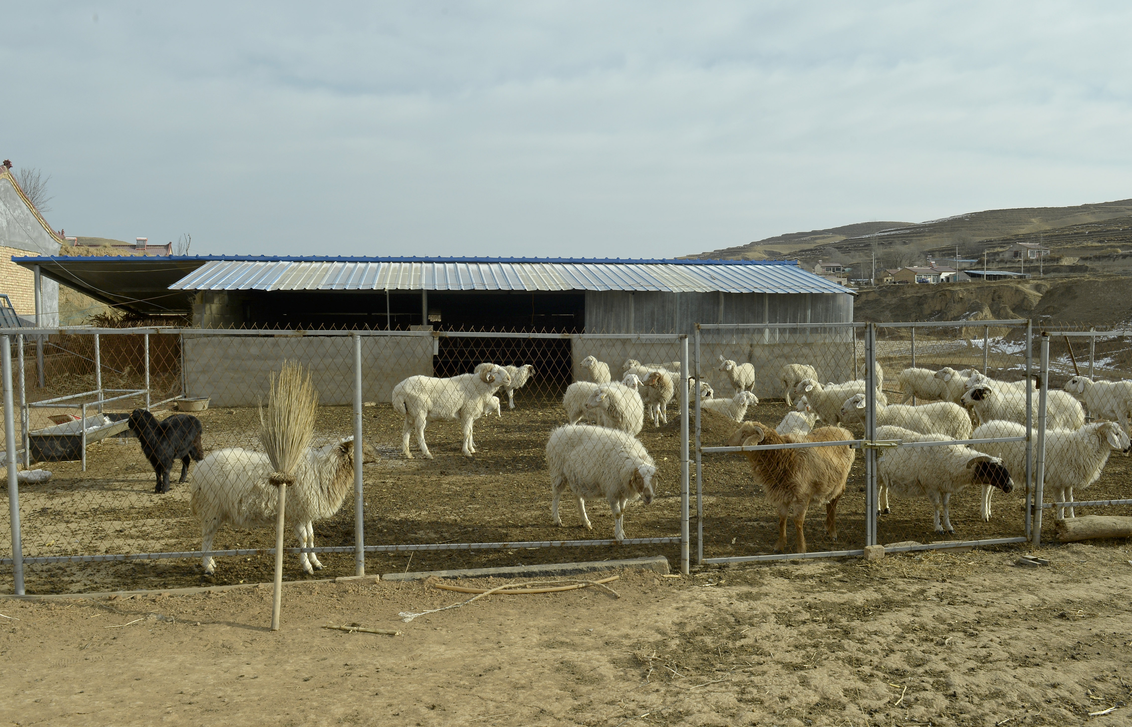 周月兴家的羊圈。新华社记者 唐如峰 摄