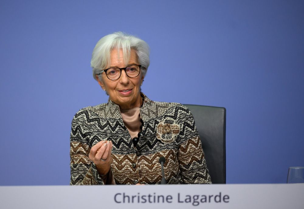 2020年12月10日,欧洲央行行长拉加德在德国法兰克福欧洲中央银行总部参加新闻发布会上讲话。(新华社发,欧洲中央银行供图)
