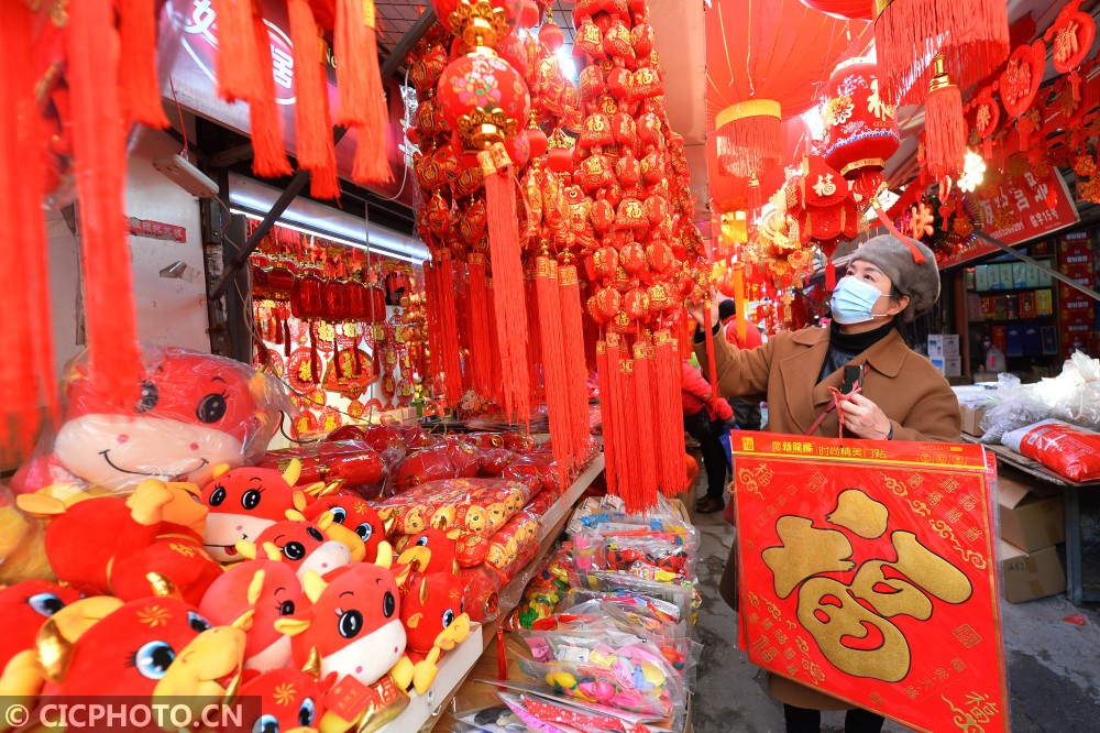 以上图片:人们在山东省青岛市一处小商品批发市场选购新年用品。CICPHOTO/王海滨 摄
