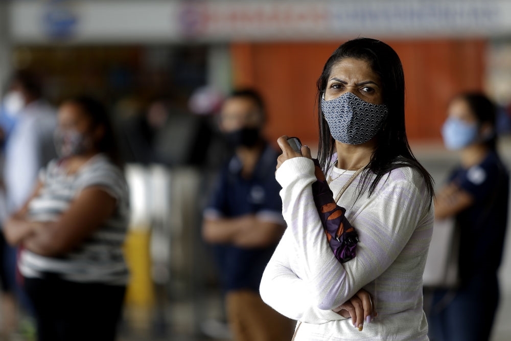 2020年12月23日,在巴西首都巴西利亚中央车站,一名女子戴着口罩等车。新华社发(卢西奥·塔沃拉摄)