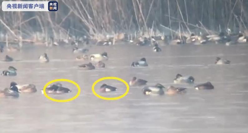 据介绍,当时周敏军正在岸边用望远镜观察,看到1公里之外的湖面上有一群野鸭子,大约5000只,大致分属10多个种群。而当他回看用长焦镜头拍摄的视频和图片后有了惊喜的发现。
