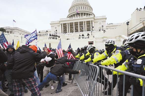美国首都华盛顿近日发生暴力示威,抗议者非法闯入国会大厦并与警察发生冲突,事件中已有5人死亡。美西方政界和媒体纷纷谴责,称其为践踏民主、破坏法治的暴力行径。但讽刺的是,近些天一撮美西方政客发表所谓联合声明,就香港警方依法拘捕反中乱港分子说三道四,污蔑抹黑香港国安法。2019年中国的香港特区立法会遭到暴力冲击时,他们同样颠倒黑白,把意图颠覆特区政府的行径说成是“追求民主”。