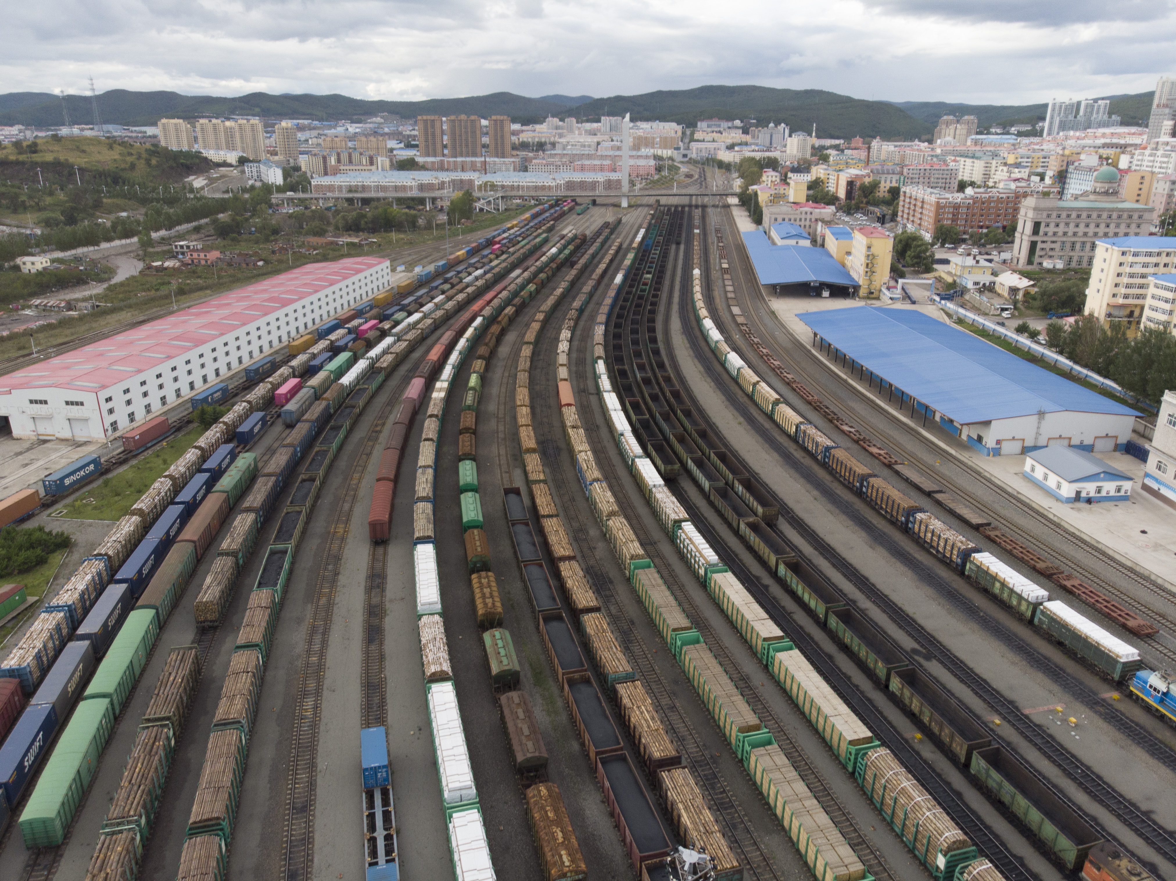 2020年9月9日拍摄的位于中国(黑龙江)自由贸易试验区绥芬河片区的绥芬河良运公司(无人机照片)。新华社发(张涛摄)