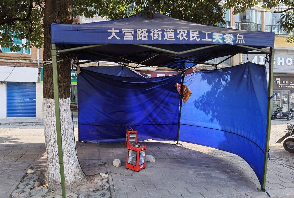 14日,记者回访了报道涉及的地点,发现两处取暖棚里都增加了一个电炉,同时由于近日当地气温回升明显,不少农民工选择露天晒太阳。