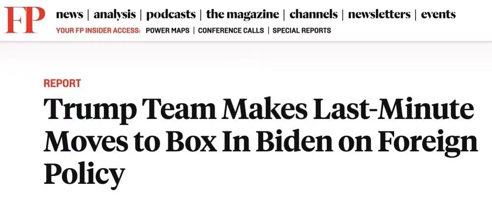 文章称,资深外交官和外交政策专家认为,这一系列政策调整是有意阻碍新政府外交政策的“临别遗言”。