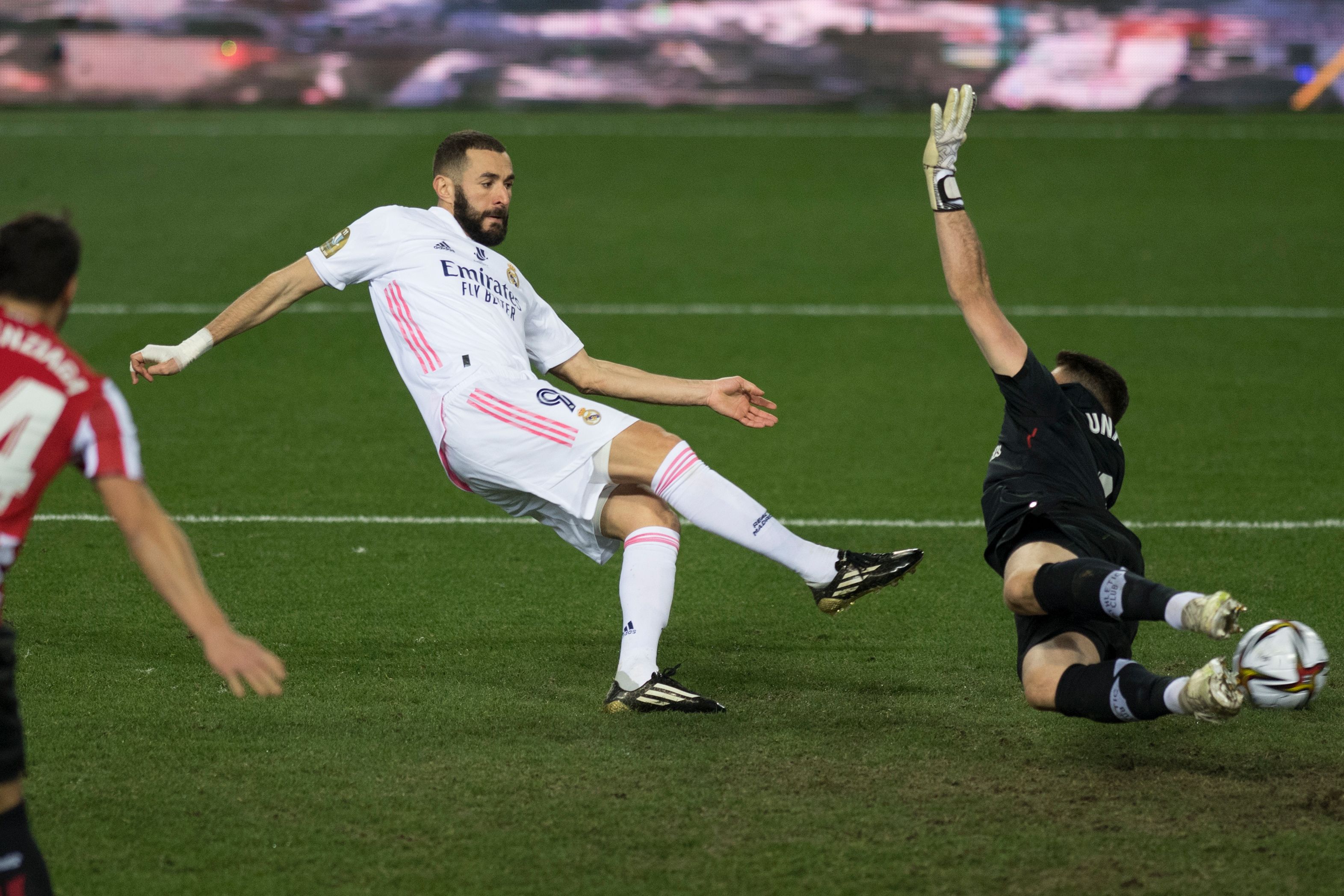 两队本场于马拉加的拉罗萨莱达球场交锋。劳尔·加西亚上半场的两粒进球为毕尔巴鄂竞技占得先机;本泽马在下半场为皇马打入缩小分差的一球,却难挽败局。毕尔巴鄂竞技在决赛中的对手将是通过点球大战淘汰了皇家社会的巴塞罗那。