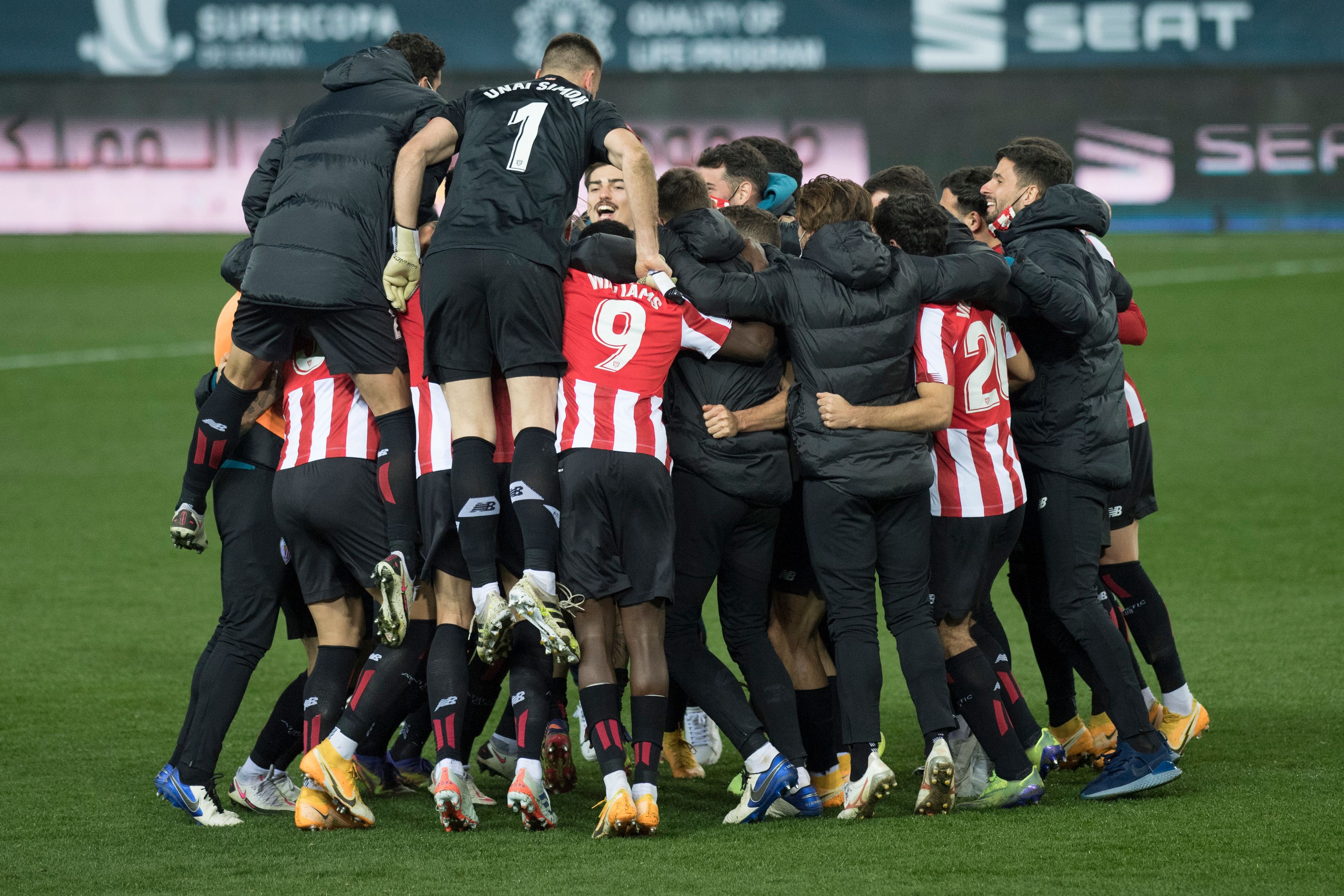 1月14日,毕尔巴鄂竞技队球员在赛后庆祝。