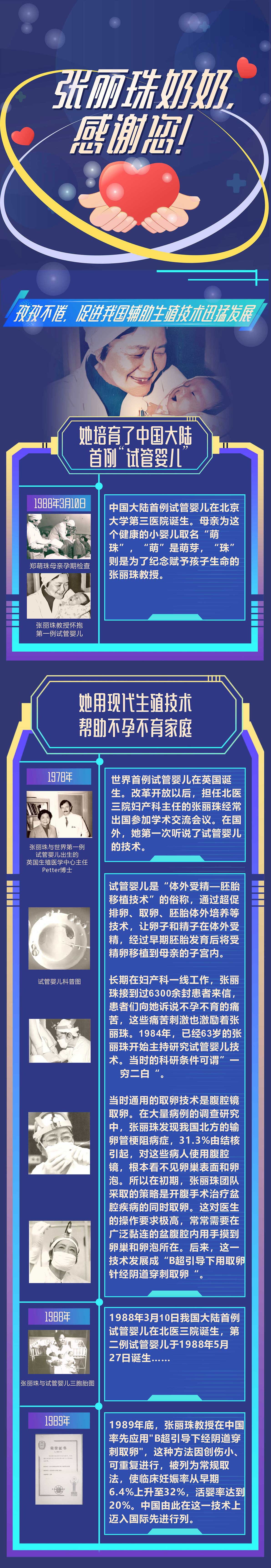 张丽珠教授是我国妇产科学的重要开拓者和现代生殖医学的先驱,也是中国大陆首例试管婴儿培育者。她一生致力于妇产科学的研究和临床工作,为我国培养了大批的妇产人才,给千千万万的不孕不育家庭带来希望,被誉为“神州试管婴儿之母”。 今天让我们一起认识她、纪念她!