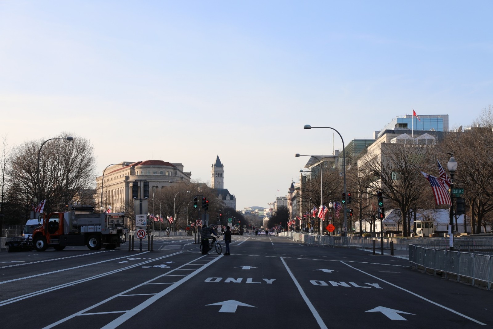 1月14日下午,通往国会大厦的宾夕法尼亚大街,已经不允许车辆通行。