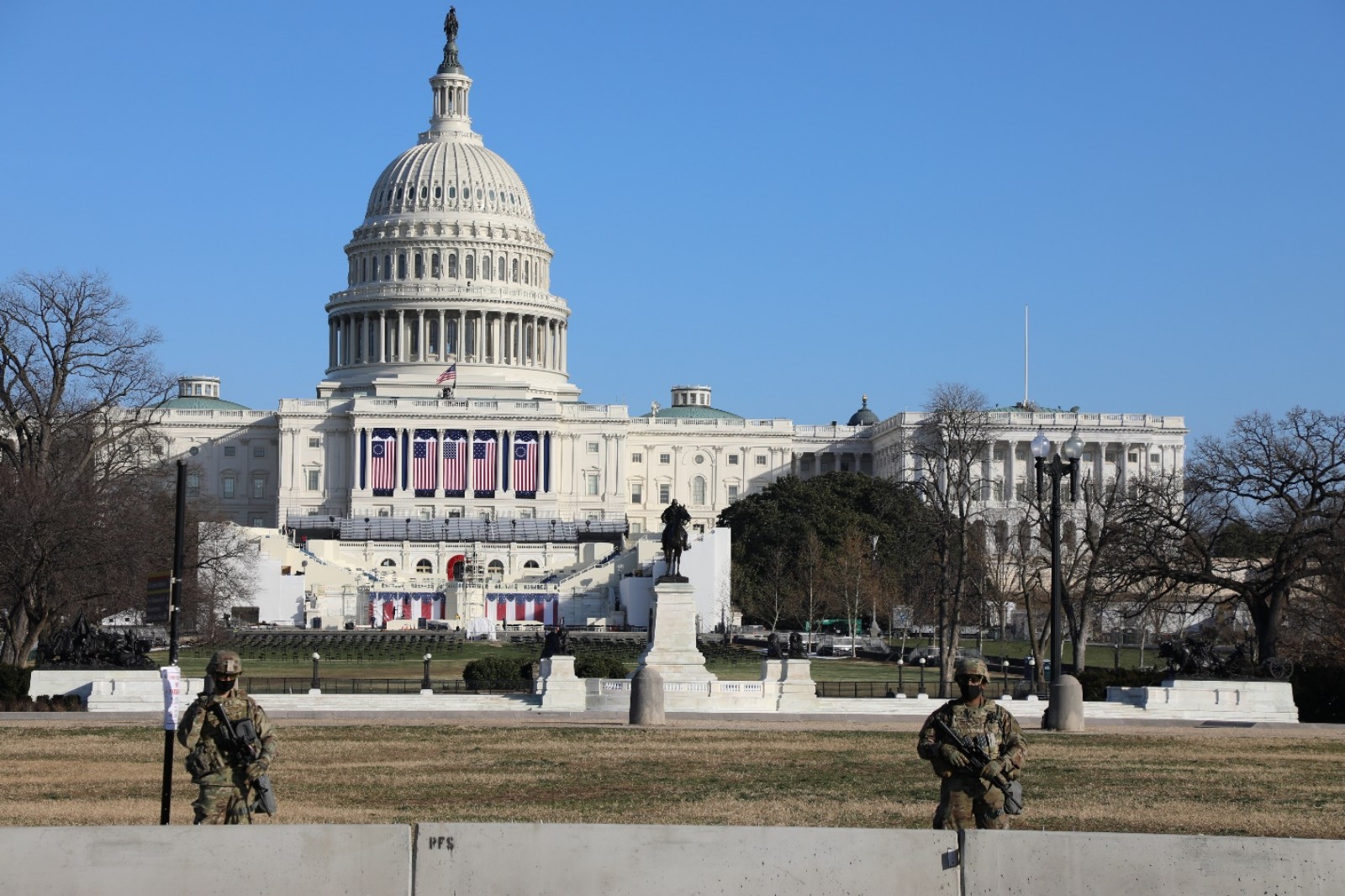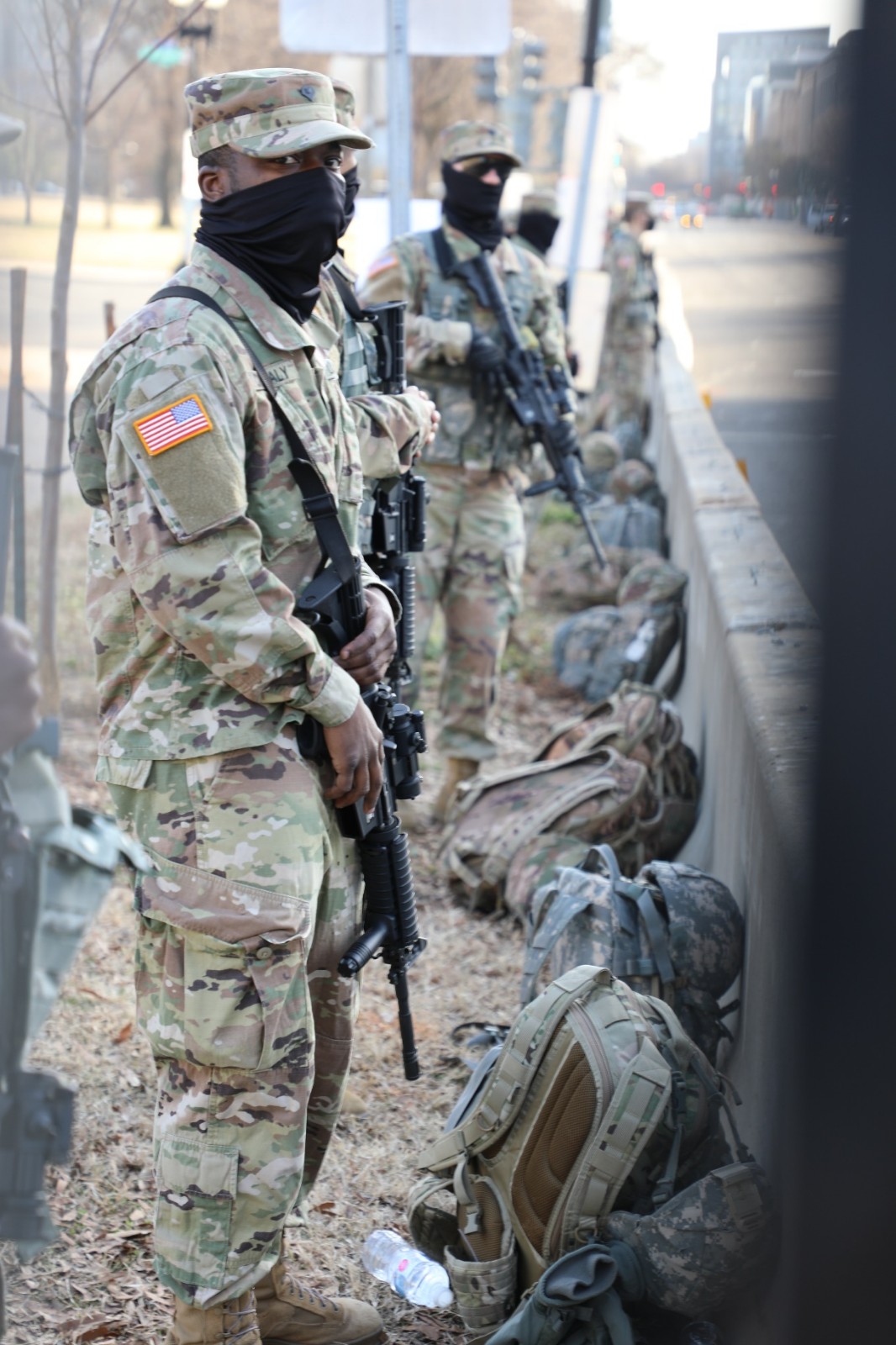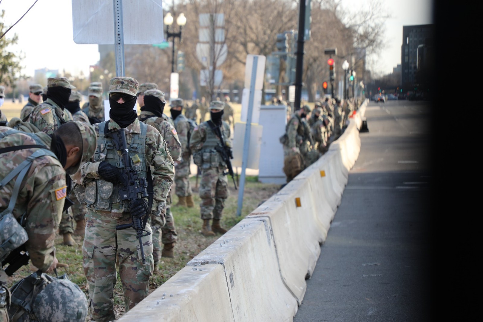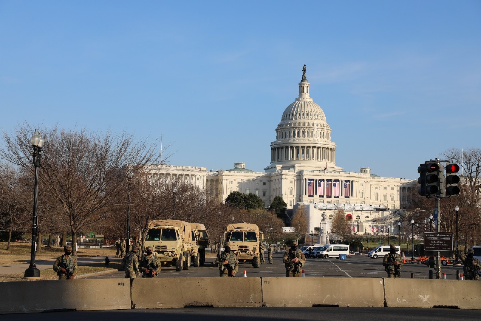 1月14日下午,通往国会大厦的主要路口,都已经布上了路障和国民警卫队员。