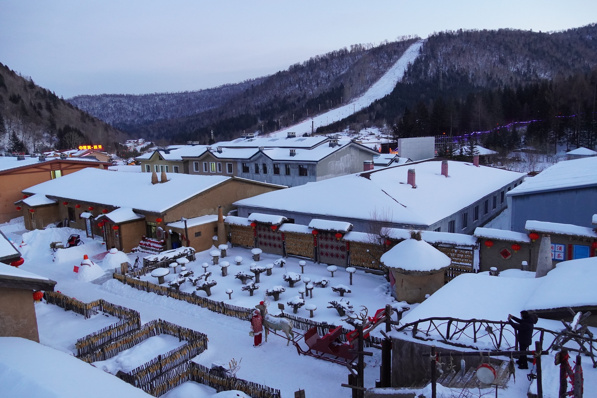 雪乡有一句口号,叫“中国雪乡,世界共享”。走在雪乡的“雪韵大街”上,穿着时髦的游客,晚上蹦迪嗨翻天的现场,并不少见的外国面孔,还有水墨画一般的风景,常会给人一种时空交错的感觉。