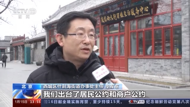 西城区什刹海街道办事处主任 毕军东:我们出台了居民公约和商户公约 垃圾分类的管理,文明养犬,那么商户做好门前三包也在公约里也有所体现,要通过平房区的物业管理,结合我们执法部门的共同努力,街道的宣传和发动把它整体维护好。(总台央视记者 王丰 杨凯)