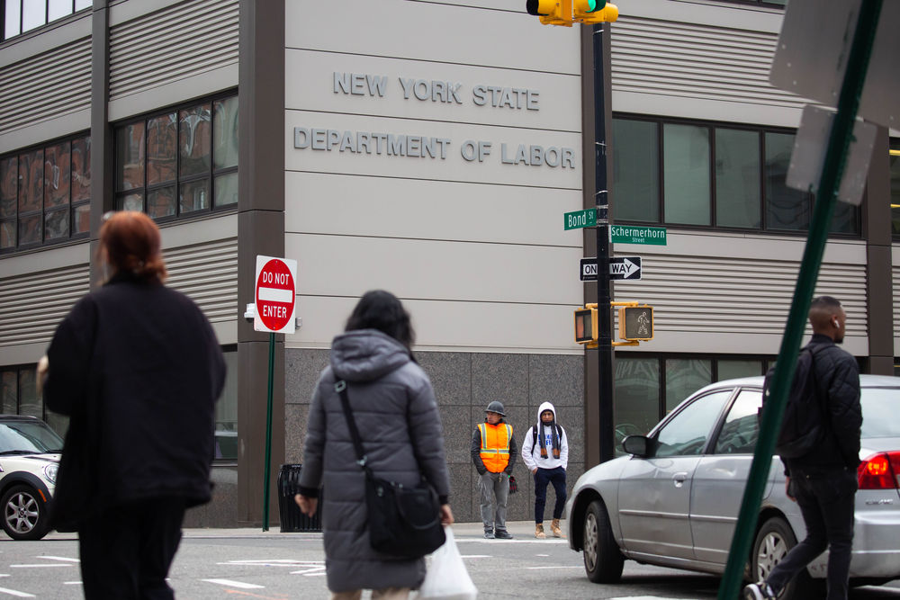 1月8日,在美国纽约,行人从纽约州劳工部大楼附近走过。(新华社发,郭克摄)