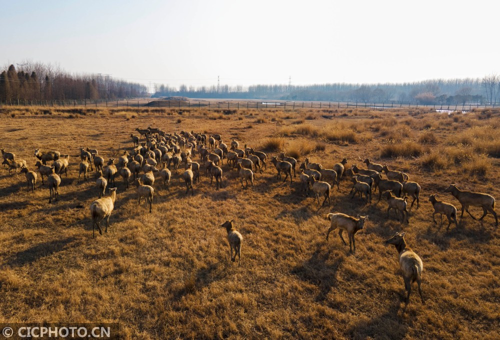 连日暖阳,江苏省泰州市最高气温回升至15℃,溱湖国家湿地公园的麋鹿在湿地内休憩,尽情享受午后阳光。