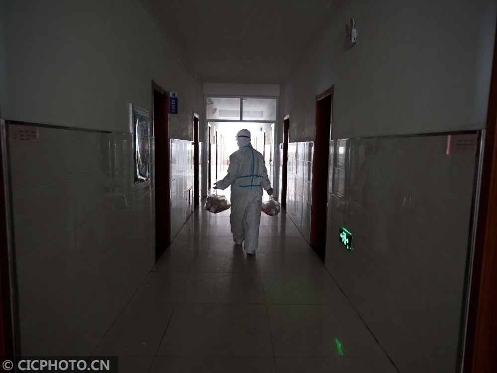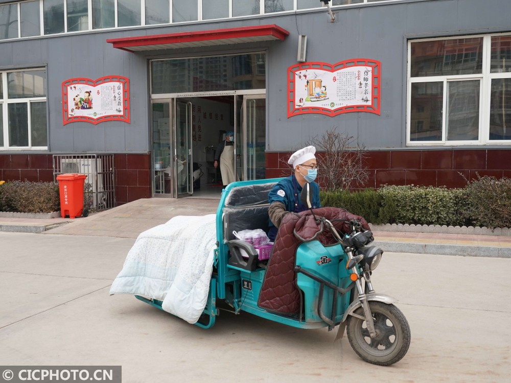 ↑2021年1月15日,在河北省邢台市巨鹿县清华园小学集中隔离点,工作人员运送营养餐。CICPHOTO/胡良川 摄