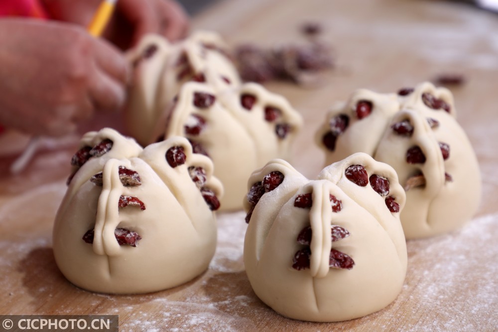 ↑2021年1月13日在山东省荣成市人和镇拍摄的“胶东花饽饽”。CICPHOTO/林海珍 摄