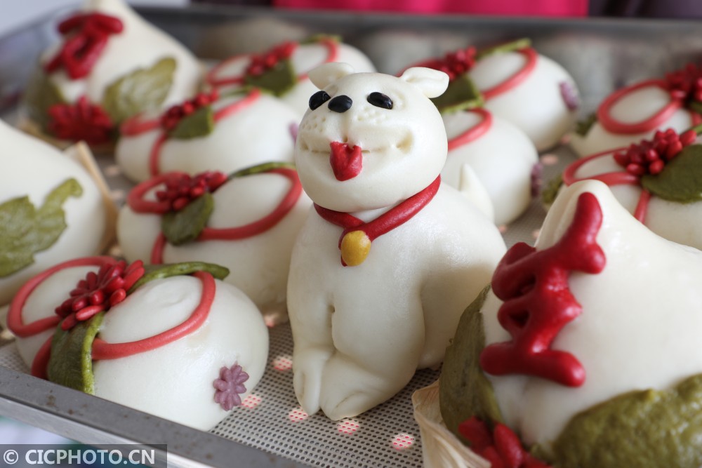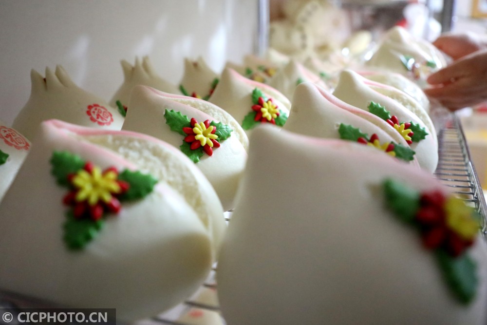 ↑2021年1月13日在山东省荣成市崖头街道河西社区拍摄的蒸制好的“胶东花饽饽”。CICPHOTO/林海珍 摄
