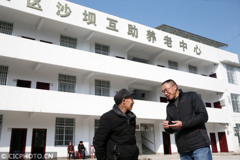 ↑2021年1月13日,在重庆市黔江区沙坝镇木良村,驻村第一书记肖鸣(右)在互助养老中心了解村民侯文华的身体健康状况。CICPHOTO/杨敏 摄