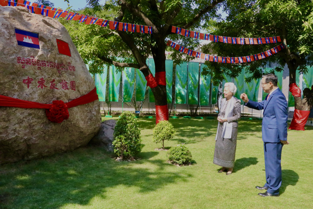 在中国驻柬埔寨大使馆内的中柬友谊园里