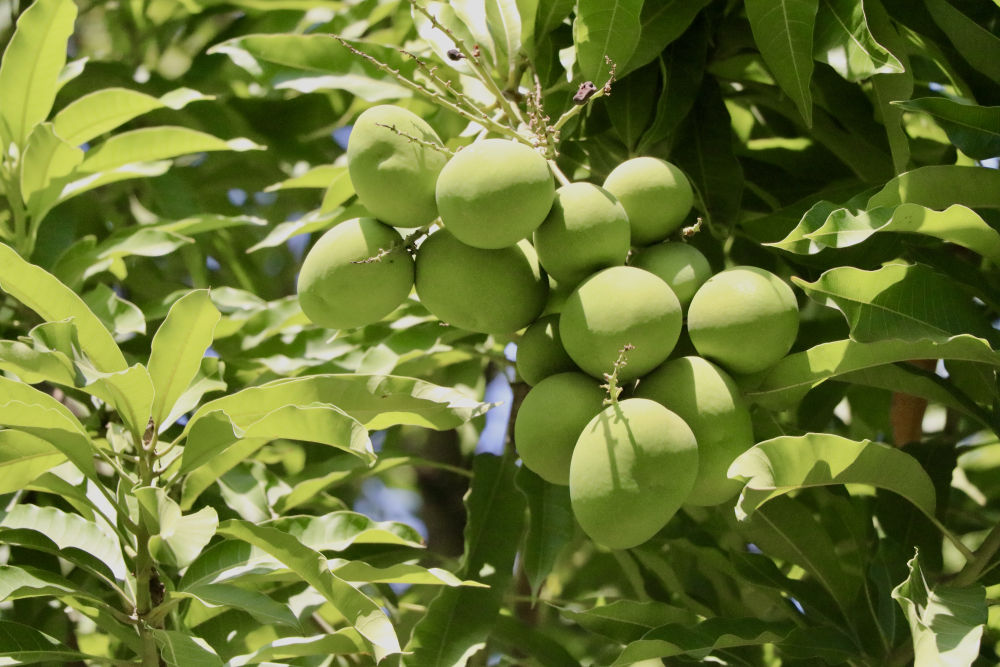1月14日在柬埔寨金边中柬友谊园拍摄的结果的芒果树。(新华社记者毛鹏飞摄)
