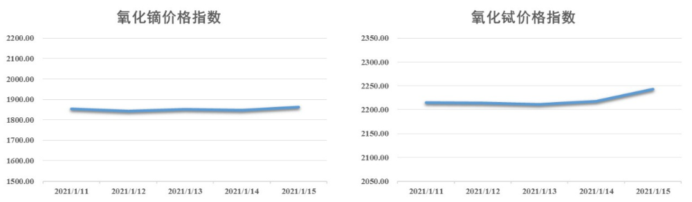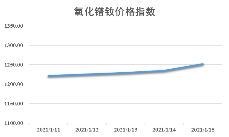 轻稀土方面,本周氧化镨钕价格持续攀升,市场现货供应紧张,上游厂商惜售挺价情绪浓厚,部分下游企业考虑物流和疫情影响,提前少量采购补充库存,价格随成交量增加不断上探。