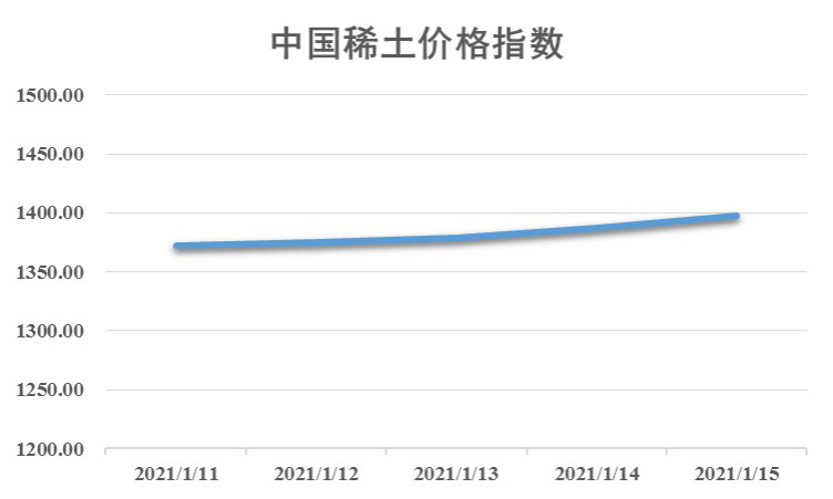 新华财经北京1月15日电(刘星麟)本周稀土市场稳中偏强,中国稀土价格指数小幅上涨,截至1月15日,中国稀土价格指数报1397.44点,较上周五(1月8日)上涨23.73点,涨幅1.73%。