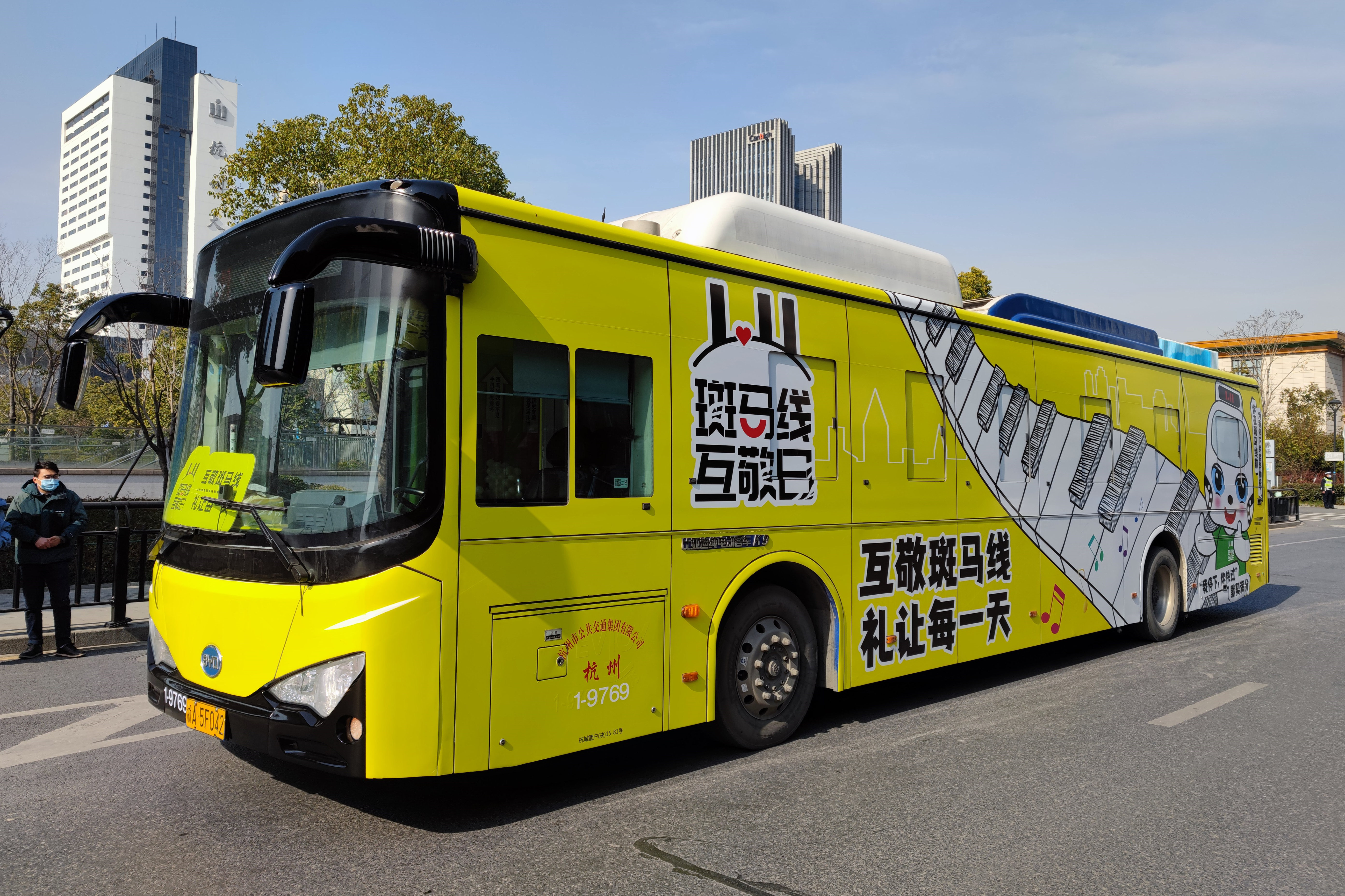 2020年1月11日,“1.11斑马线互敬日”主题公益活动在杭州举办,作为活动主要载体之一的主题改装公交车正式亮相。新华社记者林光耀 摄