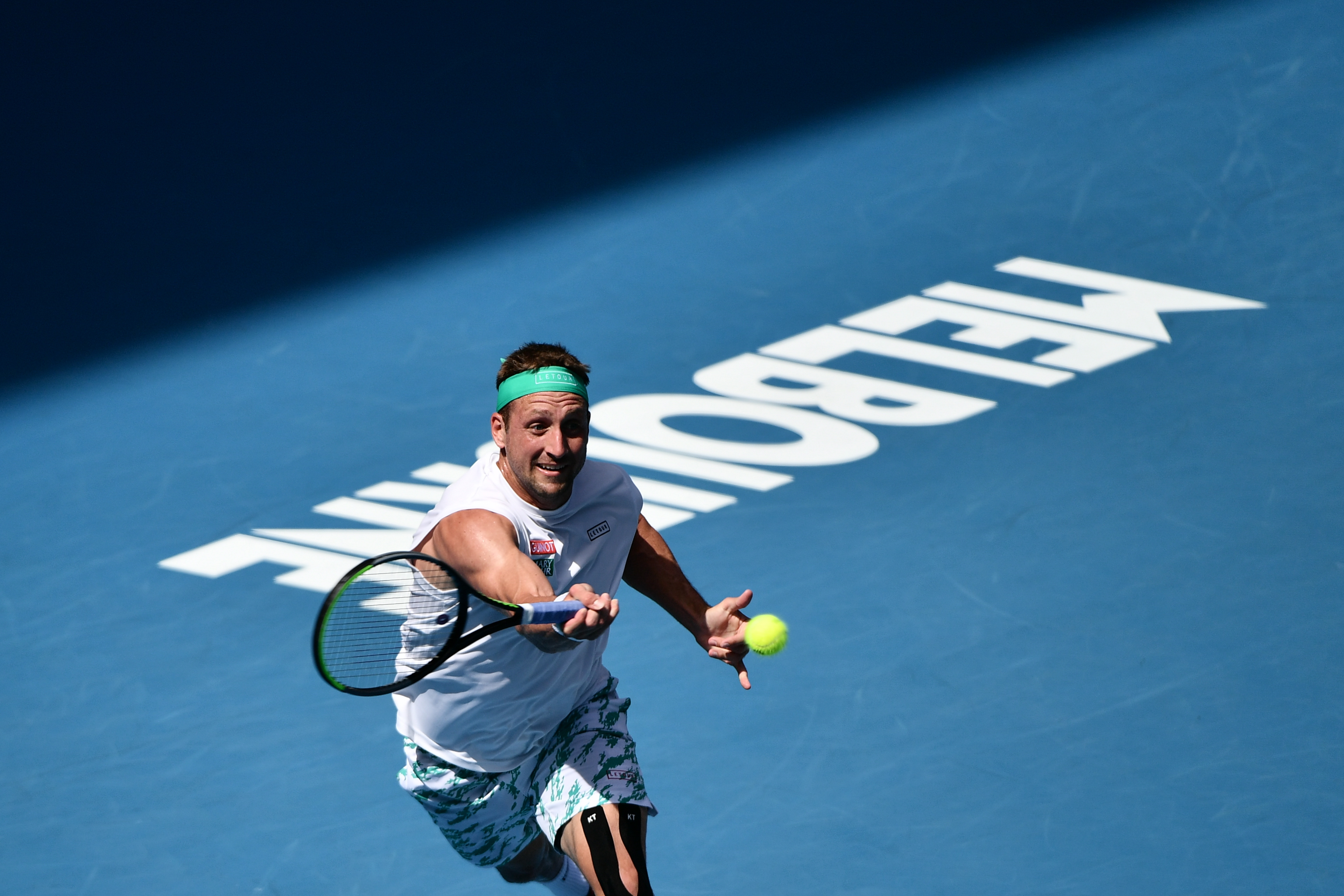2020年1月28日,桑德格伦在澳网比赛中回球。新华社记者朱炜摄