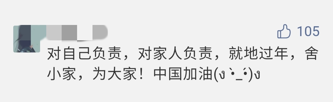 为了防疫安全,许多人响应倡导,选择“就地过年”,无论是决定留守工作地“就地过年”,还是朝着家的方向进发,不变的是浓浓的乡愁和守护健康的殷切期盼。愿每个人都能过一个平安健康的春节!