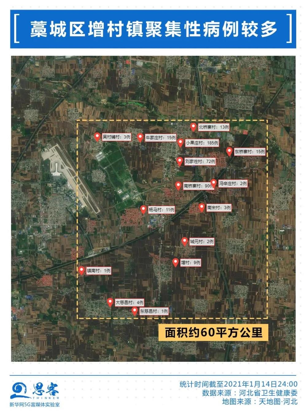 石家庄疫情呈局部高度聚集性。石家庄确诊病例行动轨迹中,约九成与藁城区农村地区有关,其中有约430例与藁城区增村镇相关。疫情较为集中的小果庄村、南桥寨村、刘家佐村、牛家庄村、东桥寨村、北桥寨村等均聚集在面积不足60平方公里的增村镇。目前,藁城区全域已是高风险地区。