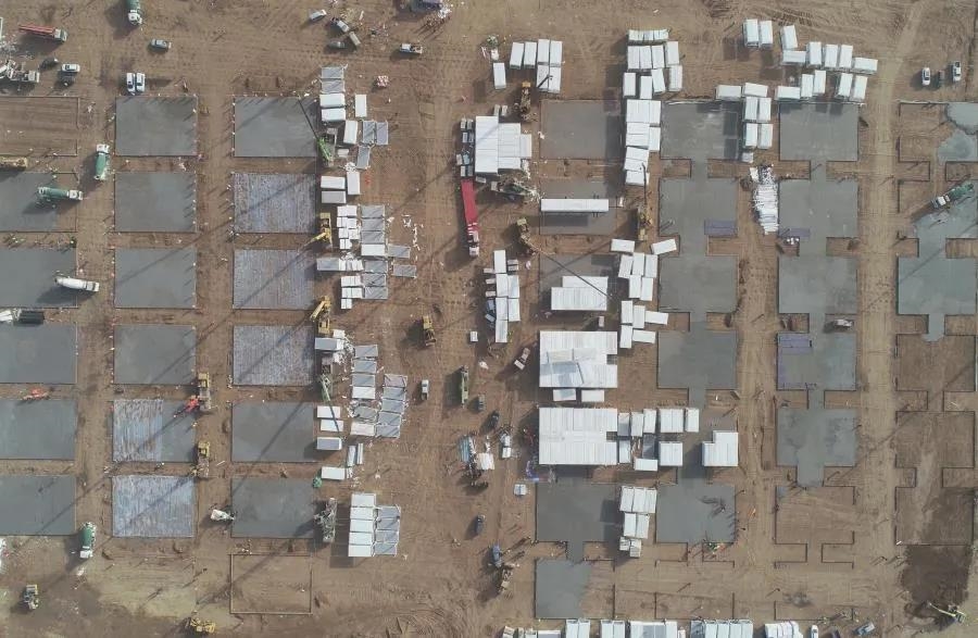 ▲1月15日,工人在石家庄黄庄公寓隔离场所项目工地施工(无人机照片)。新华社记者 杨世尧 摄