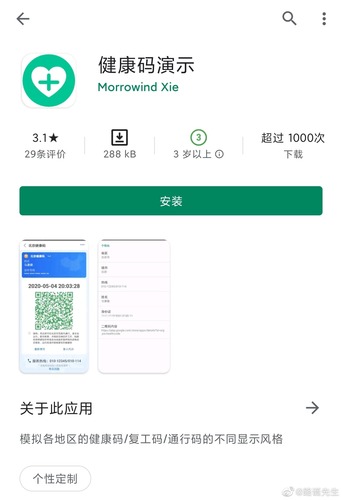 近期,国内疫情防控形势复杂严峻,部分地区出现社区传播和多代传播。有网友在新浪微博上爆料称,某应用软件商店中存在一款名为“健康码演示”的软件,能够自定义显示多地健康码。