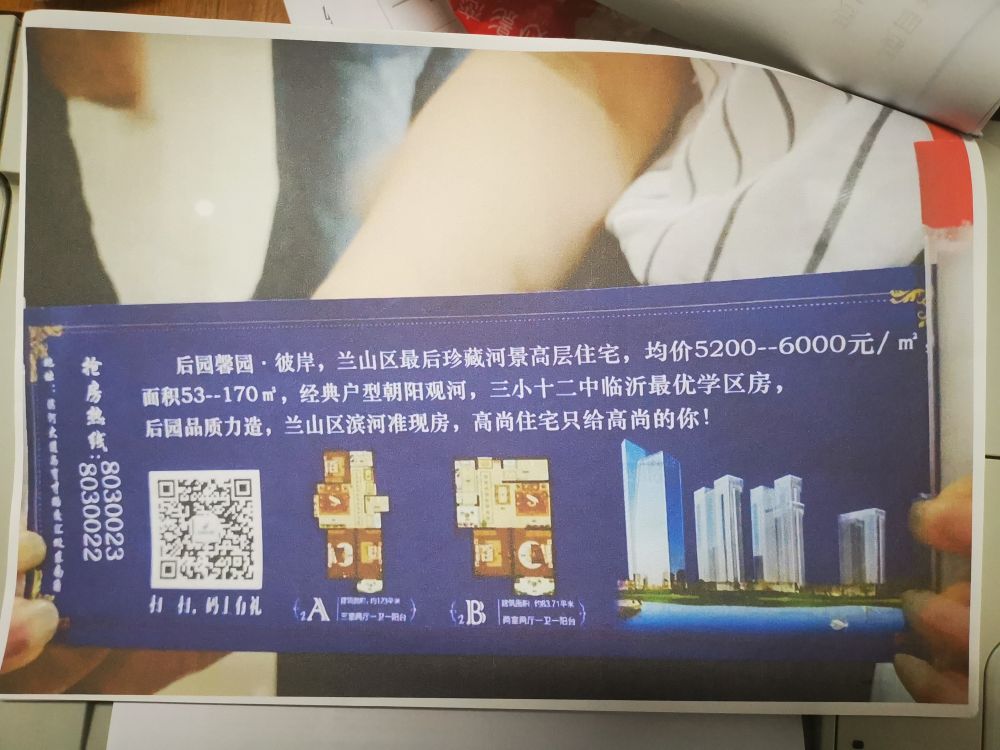 多位业主向记者提供的视频、录音等显示,临沂市汇源企业总公司销售人员宣称,“不用担心,都走1号楼的住宅手续,签合同都是70年。”记者调查发现,当时的一些宣传信息上写道:“后园馨园在售房源1#、2#、3#、5#……工程已经封顶,孩子上学成长无忧。”