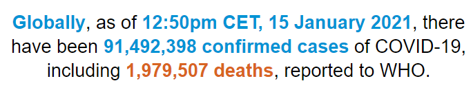 世卫组织:全球新冠肺炎确诊病例超过9149万例