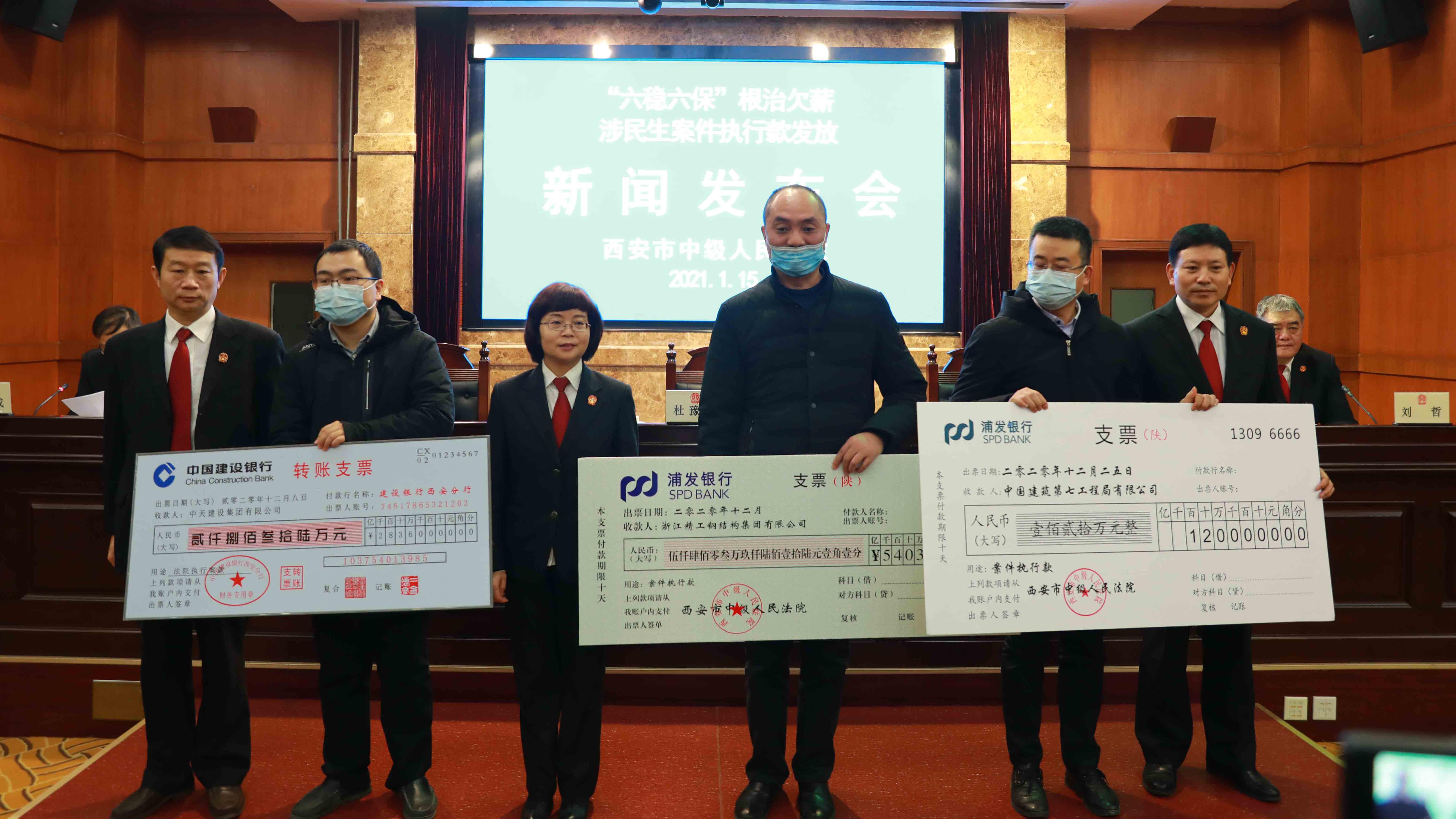 1月15日,西安中院召开涉民生系列执行案件发放案款新闻发布会,通过转账与现金发放形式共发放案款8500余万元。涉及农民工5720人。