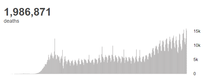根据世卫组织最新实时统计数据,截至欧洲中部时间1月15日19时08分(北京时间1月16日2时08分),全球累计新冠肺炎确诊病例91816091例,累计死亡病例1986871例。15日全球新冠肺炎确诊病例新增709865例,死亡病例新增15407例。(总台记者 朱赫)