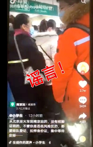 南京站工作人员表示:这是假消息,大部分到站旅客出站只需检测体温,核查健康码。目前,只有来自石家庄、大连等疫情严重地区的旅客出站需要查验核酸报告。