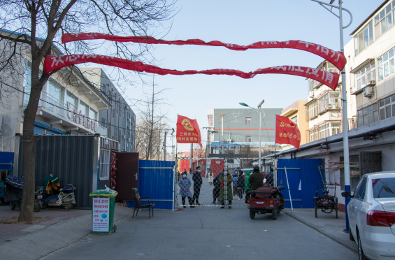 △1月13日,河北廊坊,三河市西关村村口实行出入管控措施。