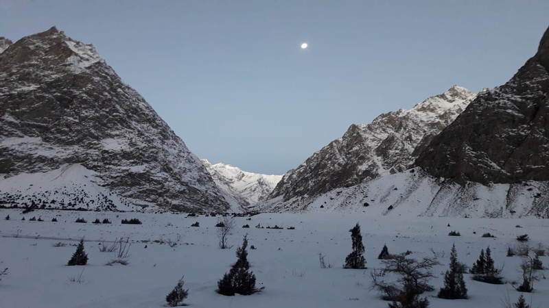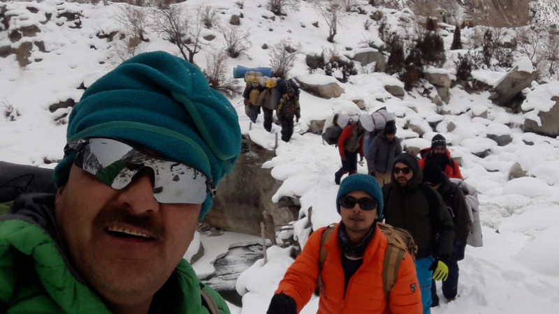 向导沙希德和同行们来到高山