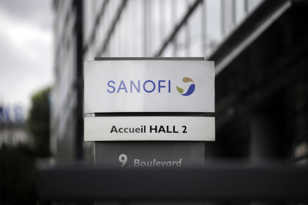 图为2012年9月25日在法国巴黎拍摄的赛诺菲办公楼外企业标志。(新华社/EPA欧新)