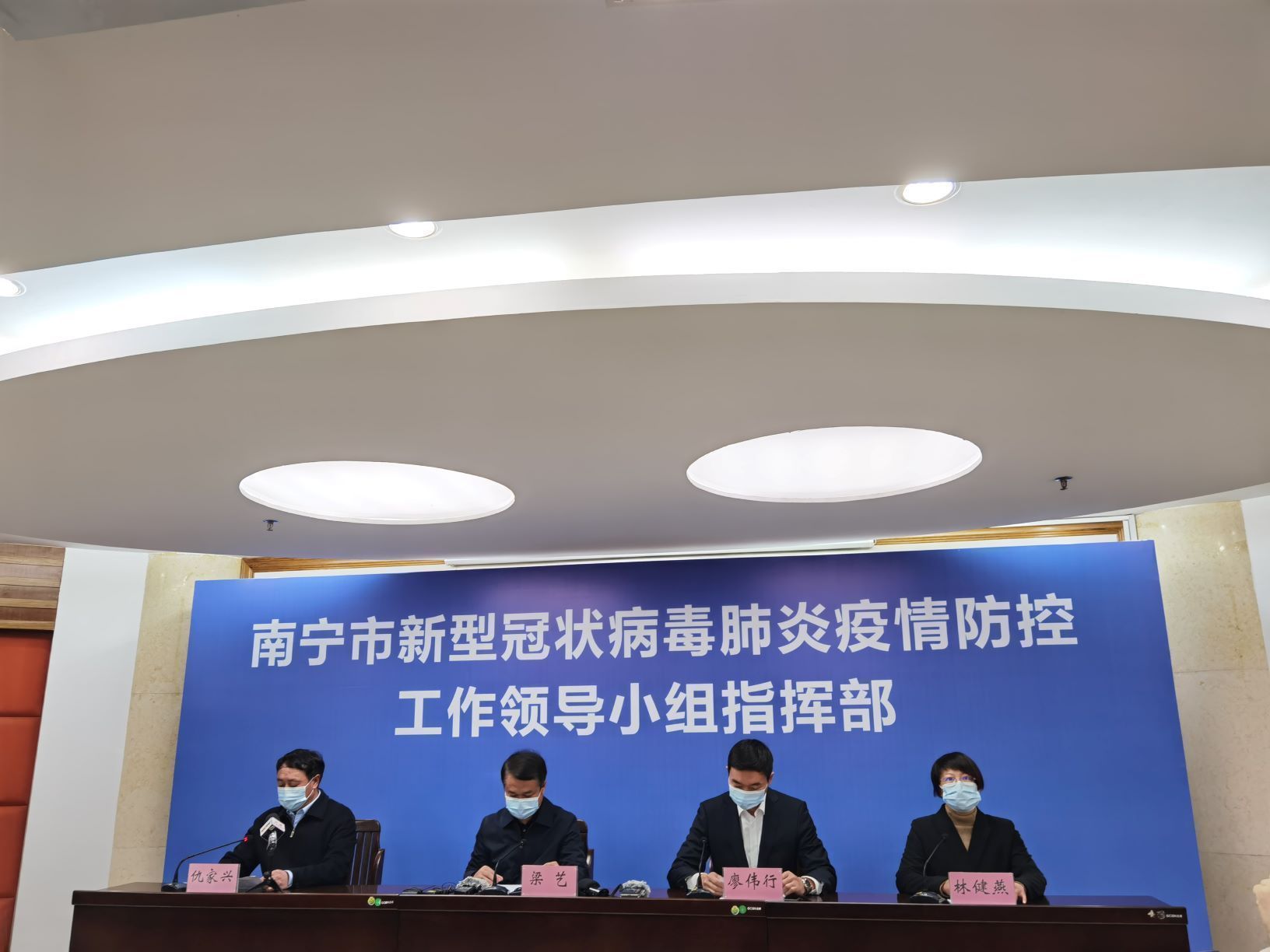 1月16日下午,南宁市新型冠状病毒肺炎疫情防控工作领导小组指挥部举行第三场新闻发布会,对南宁市疫情进行了通报:1月15日0-24时,南宁市无新增报告确诊病例、疑似病例和无症状感染者。新增本地确诊病例的密切接触者183人。现有正在接受治疗的确诊病例1例;密切接触者330人(其中本地病例密接316人,外地协查的病例密接14人),均正在集中隔离观察中。
