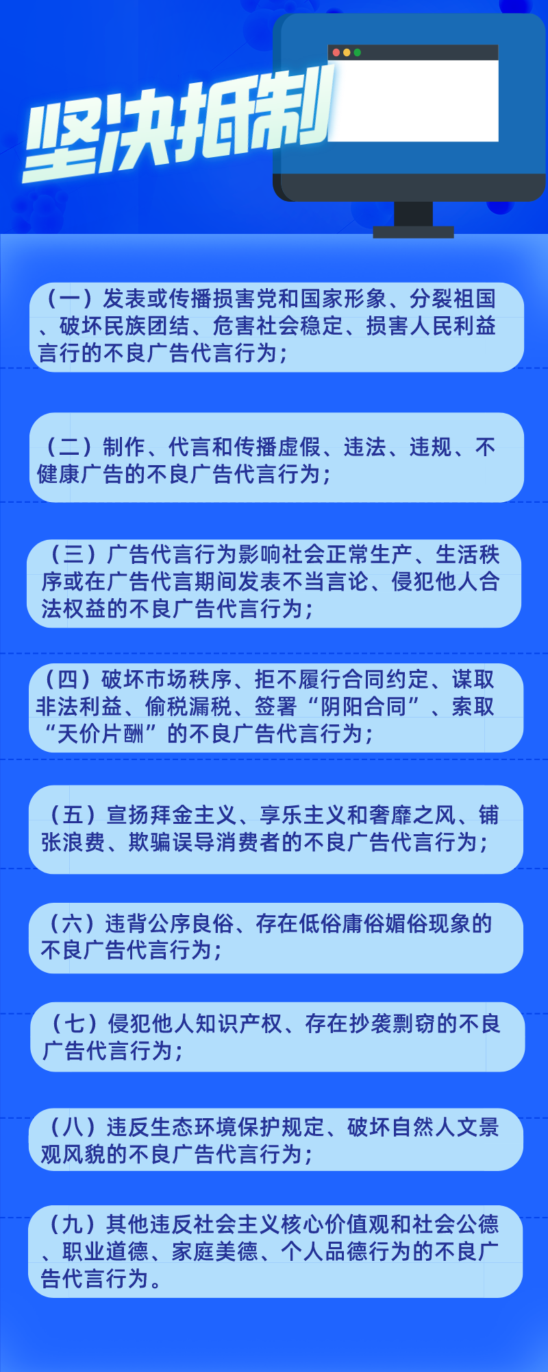 公约对九项不良广告代言行为提出了坚决抵制: